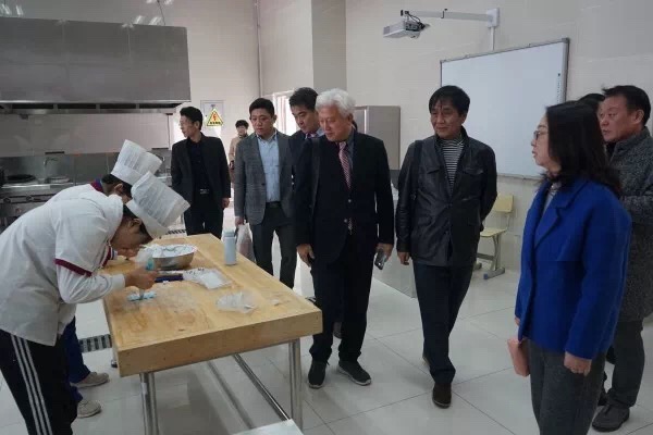 考察团一行参观了学校的教学区、烹饪实训中心、汽车工程实训中心和智能制造实训中心等实训区以及相关教学软硬件设施。客人对市委市政府高度重视职业教育的举措深表赞叹,对我校的整体规划、学习生活设施、校园文化景观、先进的实训设备等给予高度评价。