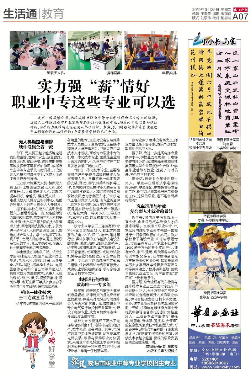 威海晚报——实力强 “薪”情好 职业中专这些专业可以选 时间:2019-06-26 来源: 发布人: 浏览量: