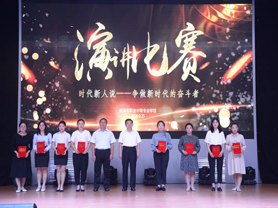 市职业中专教职工演讲比赛圆满落幕时间:2020-09-25 来源:工会 发布人: 浏览量:为持续深化习近平新时代中国特色社会主义思想学习教育,大力弘扬劳模精神、工匠精神,根据省总工会和市总工会工作部署,9月25日,我校工会牵头举办了“时代新人说——争做新时代的奋斗者”全校教职工演讲比赛。